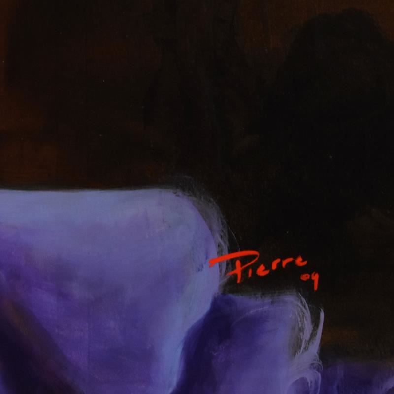 This is an original painting on gallery wrapped canvas by David Silva, hand signed using the nom de plume, Pierre. The artist uses a technique in which he fuses a base layer of paper on top of the canvas before applying oil paint. Includes Letter of Authe