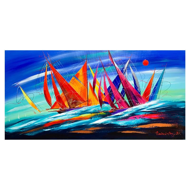 This is an original acrylic painting on canvas by Natalia Sinkovsky, hand signed by the artist. Includes Letter of Authenticity. Measures approximately 24" x 48" (image).