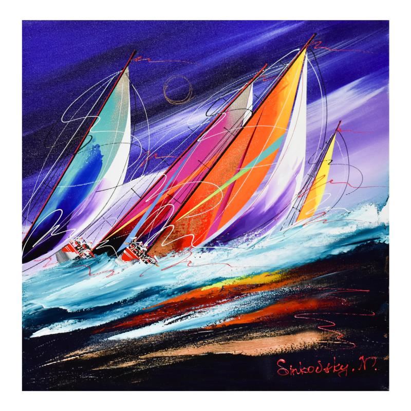 This is an original acrylic painting on canvas by Natalia Sinkovsky, hand signed by the artist. Includes Letter of Authenticity. Measures approximately 20" x 24" (image).