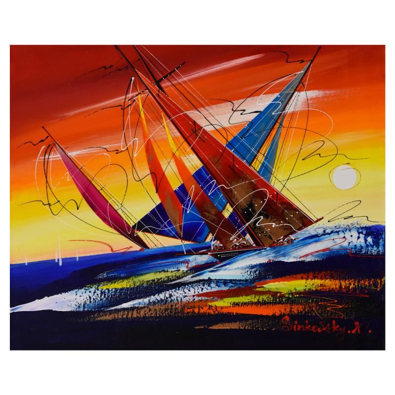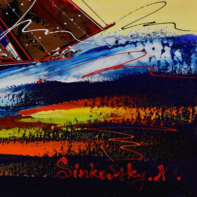 This is an original acrylic painting on canvas by Natalia Sinkovsky, hand signed by the artist. Includes Letter of Authenticity. Measures approximately 19.5" x 15.5" (image).