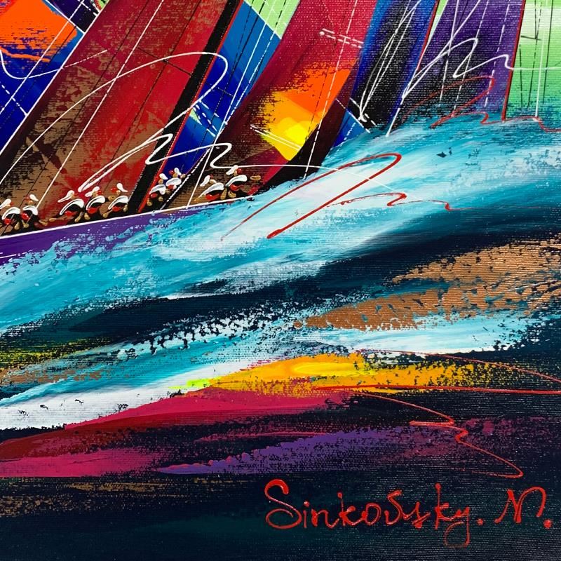 This is a custom framed original acrylic painting on canvas by Natalia Sinkovsky. Hand signed by the artist, the piece includes letter of authenticity. Measures approximately 29" x 29" (framed), 24" x 24" (image). This item requires special handling and may have a longer than usual turnaround.