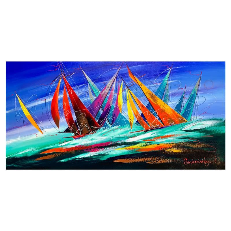 This is an original acrylic painting on canvas by Natalia Sinkovsky, hand signed by the artist. Includes Letter of Authenticity. Measures approximately 20" x 40" (image).