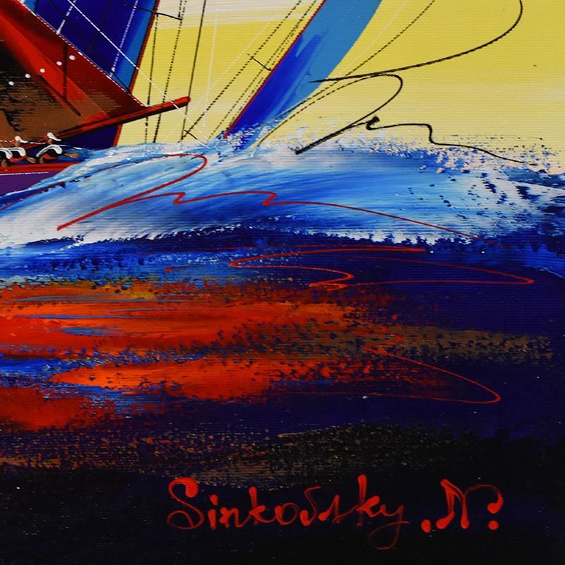 This is an original acrylic painting on canvas by Natalia Sinkovsky, hand signed by the artist. Includes Letter of Authenticity. Measures approximately 35" x 19" (image).