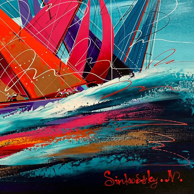 This is a custom framed original acrylic painting on canvas by Natalia Sinkovsky. Hand signed by the artist, the piece includes letter of authenticity. Measures approximately 25" x 29" (framed), 20" x 24" (image). This item requires special handling and may have a longer than usual turnaround.
