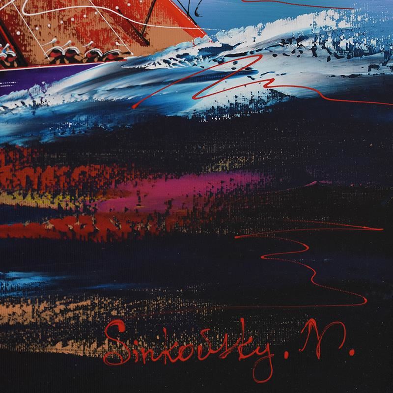 This is an original acrylic painting on canvas by Natalia Sinkovsky, hand signed by the artist. Includes Letter of Authenticity. Measures approximately 48" x 20" (image).