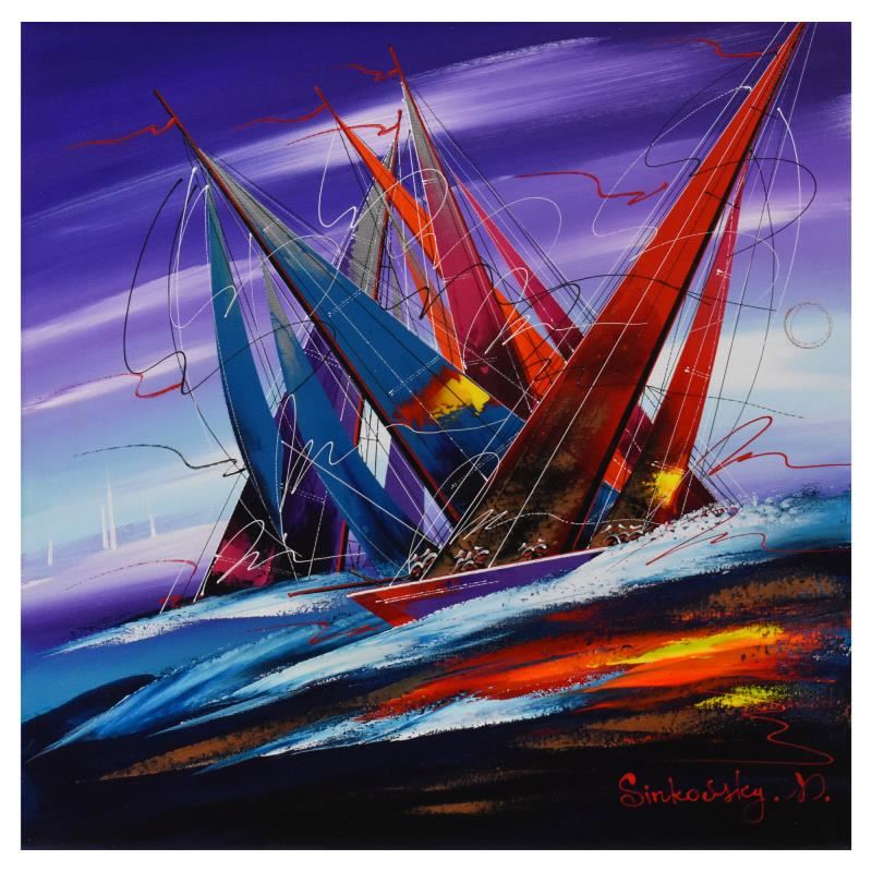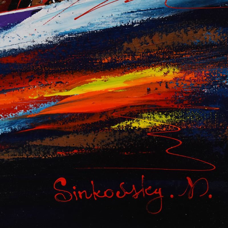 This is an original acrylic painting on canvas by Natalia Sinkovsky, hand signed by the artist. Includes Letter of Authenticity. Measures approximately 24" x 24" (image).