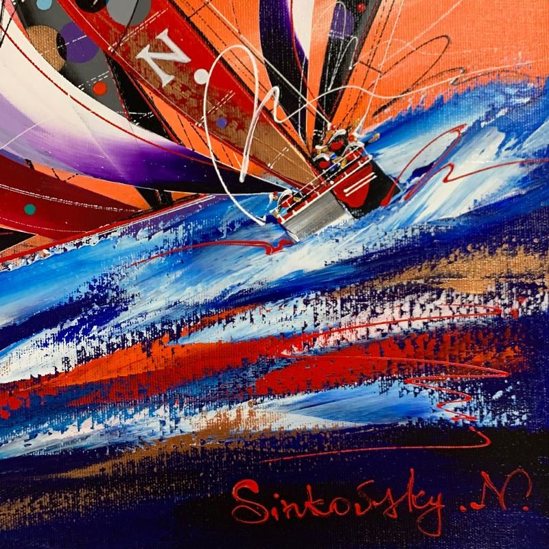 This is a custom framed original acrylic painting on canvas by Natalia Sinkovsky. Hand signed by the artist, the piece includes letter of authenticity. Measures approximately 25" x 25" (framed), 20" x 20" (image). This item requires special handling and may have a longer than usual turnaround.