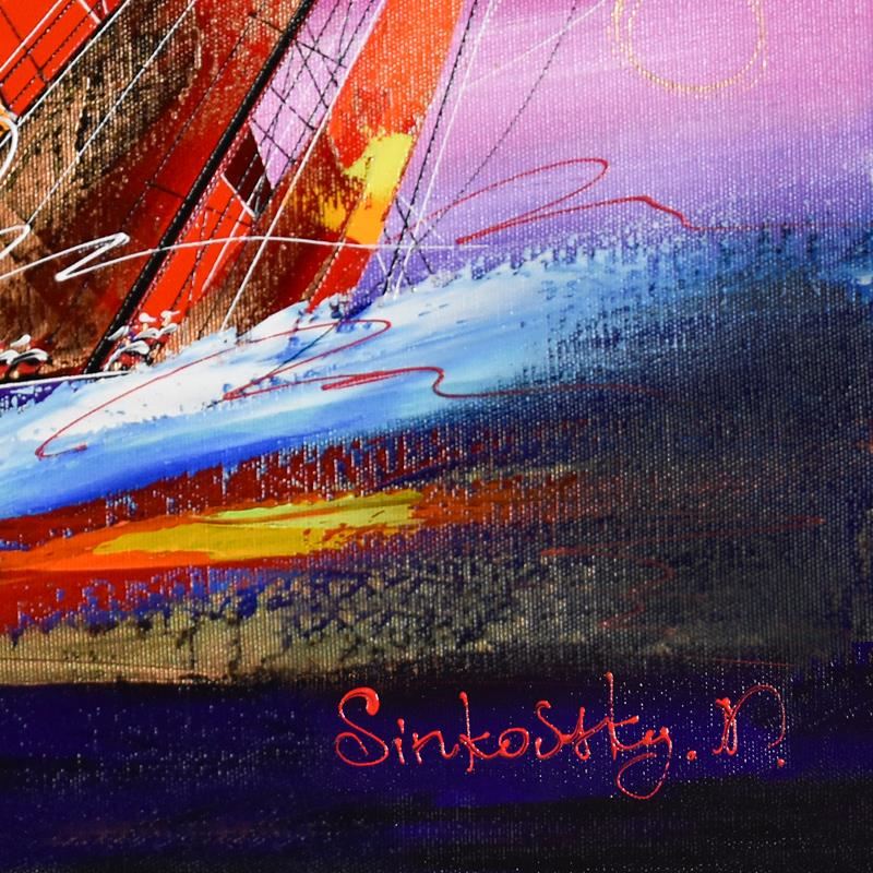This is an original acrylic painting on canvas by Natalia Sinkovsky, hand signed by the artist. Includes Letter of Authenticity. Measures approximately 16" x 20" (image).