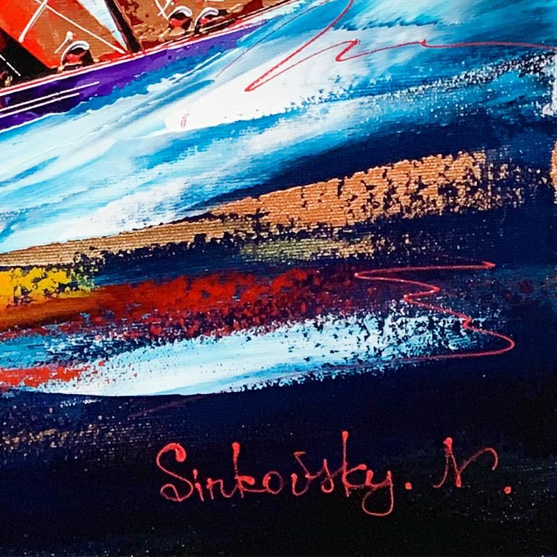 This is an original acrylic painting on canvas by Natalia Sinkovsky, hand signed by the artist. Includes Letter of Authenticity. Measures approximately 20" x 20" (image).