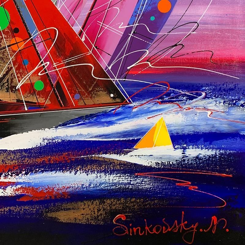 This is a custom framed original acrylic painting on canvas by Natalia Sinkovsky. Hand signed by the artist, the piece includes letter of authenticity. Measures approximately 25" x 25" (framed), 20" x 20" (image). This item requires special handling and m