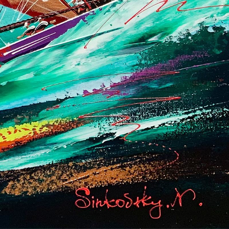 This is an original acrylic painting on canvas by Natalia Sinkovsky, hand signed by the artist. Includes Letter of Authenticity. Measures approximately 20" x 20" (image).