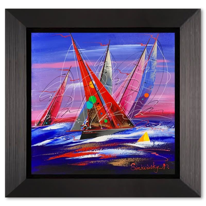 This is a custom framed original acrylic painting on canvas by Natalia Sinkovsky. Hand signed by the artist, the piece includes letter of authenticity. Measures approximately 25" x 25" (framed), 20" x 20" (image). This item requires special handling and m