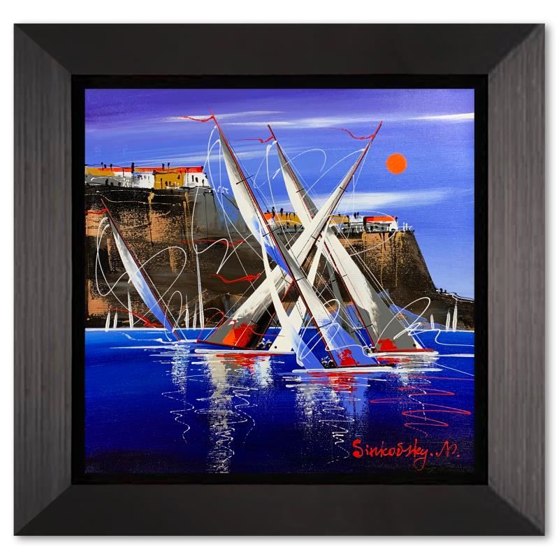 This is a custom framed original acrylic painting on canvas by Natalia Sinkovsky. Hand signed by the artist, the piece includes letter of authenticity. Measures approximately 21" x 21" (framed), 16" x 16" (image). This item requires special handling and may have a longer than usual turnaround.