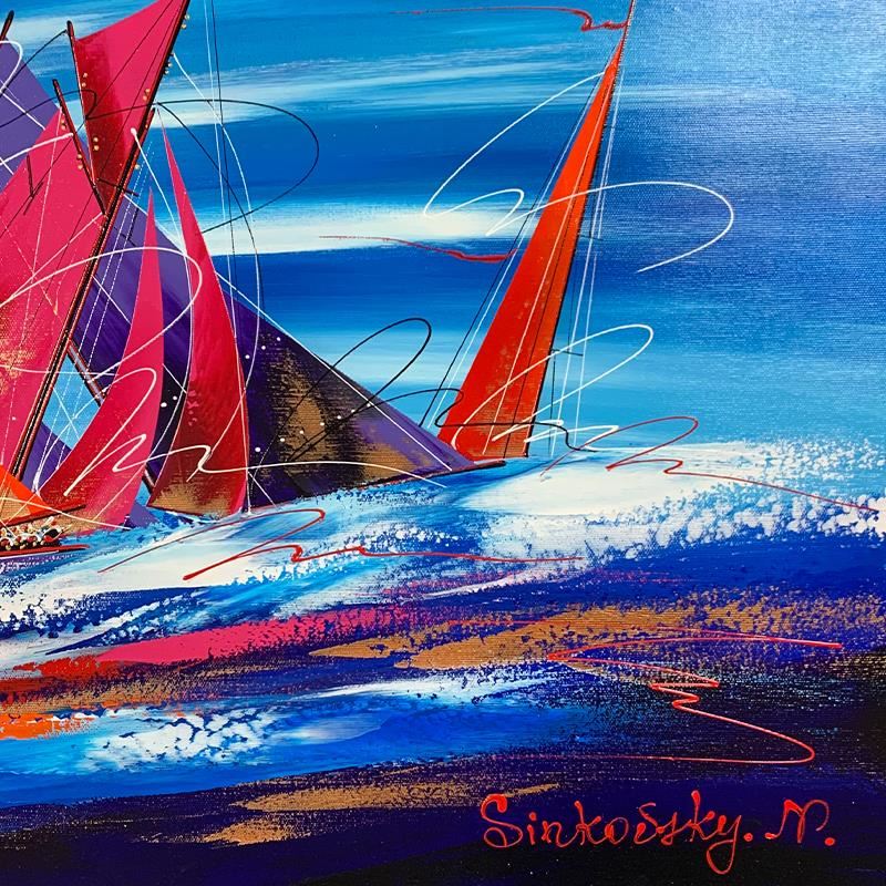 This is a custom framed original acrylic painting on canvas by Natalia Sinkovsky. Hand signed by the artist, the piece includes letter of authenticity. Measures approximately 25 x 45 (framed), 20 x 40 (image). This item requires special handling and may have a longer than usual turnaround.