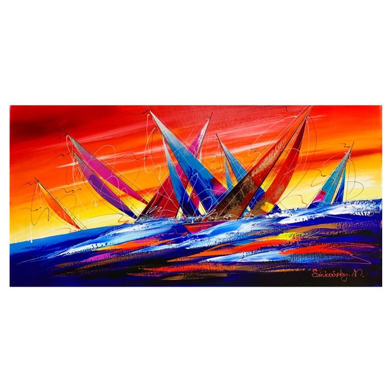 This is an original acrylic painting on canvas by Natalia Sinkovsky, hand signed by the artist. Includes Letter of Authenticity. Measures approximately 20" x 40" (image).