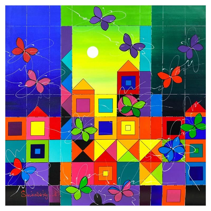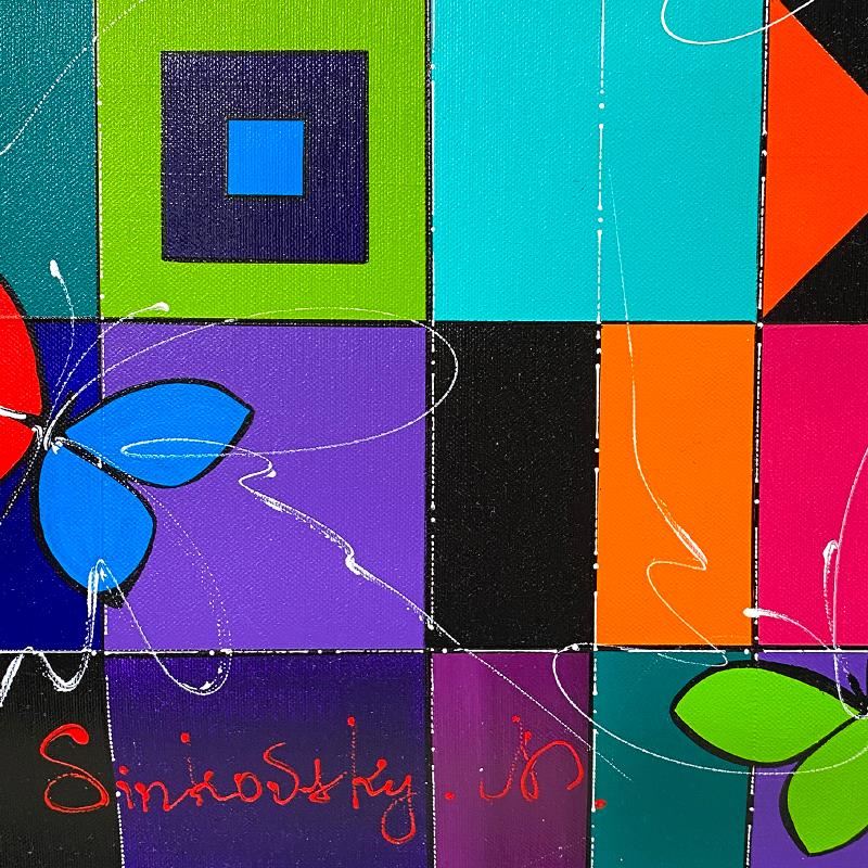 This is an original acrylic painting on canvas by Natalia Sinkovsky, hand signed by the artist. Includes Letter of Authenticity. Measures approx. 36" x 36" (image).
