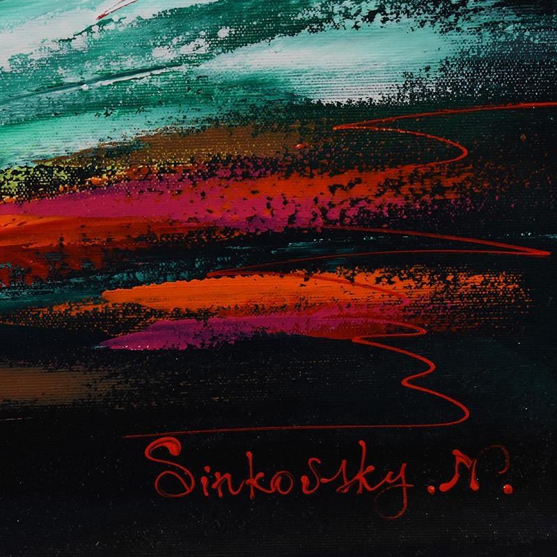 This is an original acrylic painting on canvas by Natalia Sinkovsky, hand signed by the artist. Includes Letter of Authenticity. Measures approximately 28" x 28" (image).