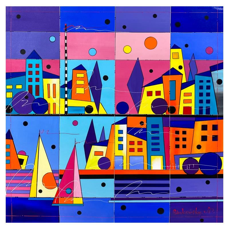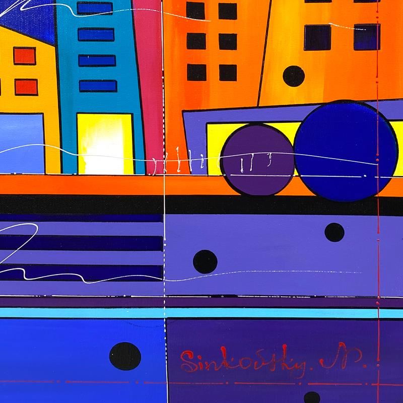 This is an original acrylic painting on canvas by Natalia Sinkovsky, hand signed by the artist. Includes Letter of Authenticity. Measures approx. 32" x 32" (image).