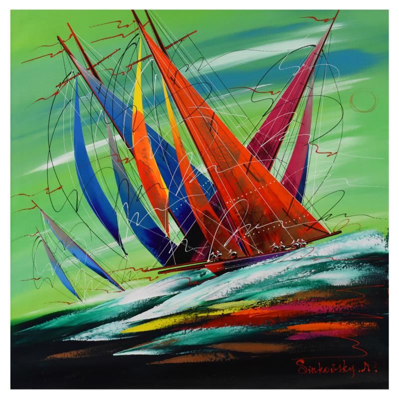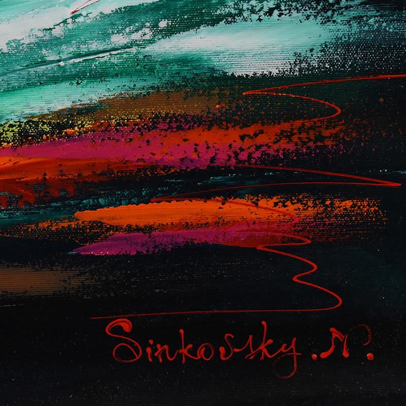This is an original acrylic painting on canvas by Natalia Sinkovsky, hand signed by the artist. Includes Letter of Authenticity. Measures approximately 28" x 28" (image).