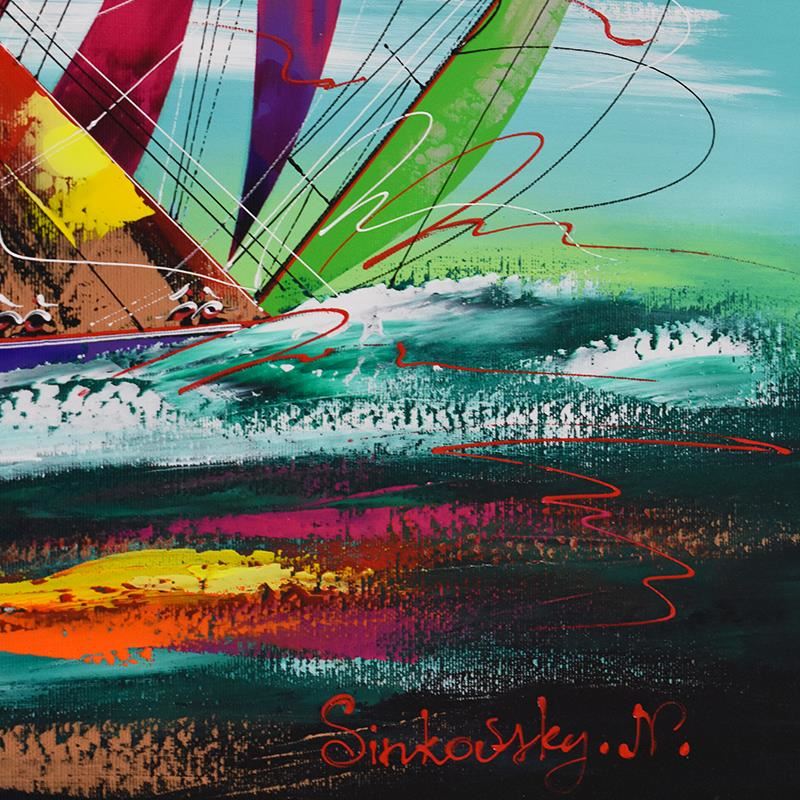This is an original acrylic painting on canvas by Natalia Sinkovsky, hand signed by the artist. Includes Letter of Authenticity. Measures approximately 48" x 20" (image).