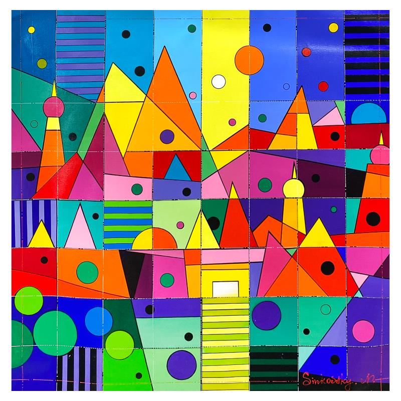 This is an original acrylic painting on canvas by Natalia Sinkovsky, hand signed by the artist. Includes Letter of Authenticity. Measures approx. 32" x 32" (image).