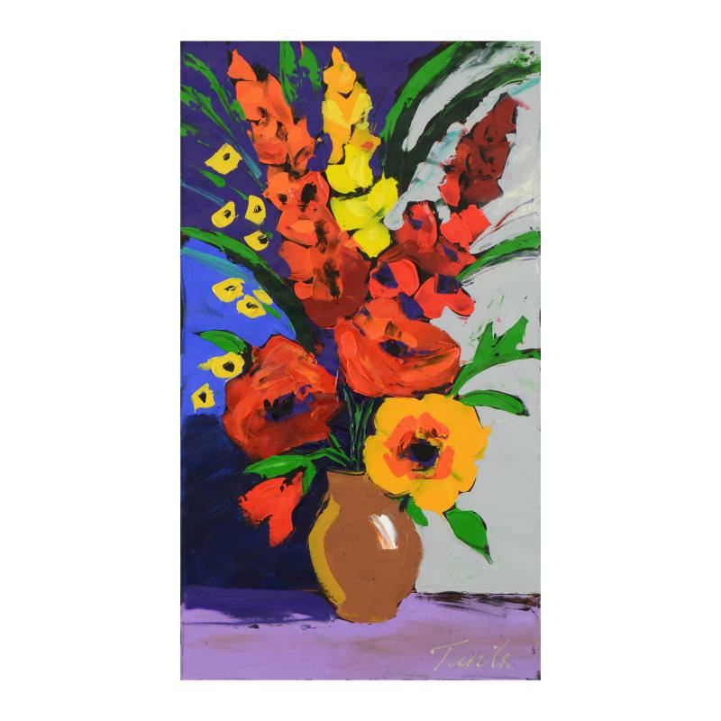 This is an original acrylic painting on canvas by Lena Tants, hand signed by the artist. Includes Letter of Authenticity. Measures approx. 16" x 30" (image).