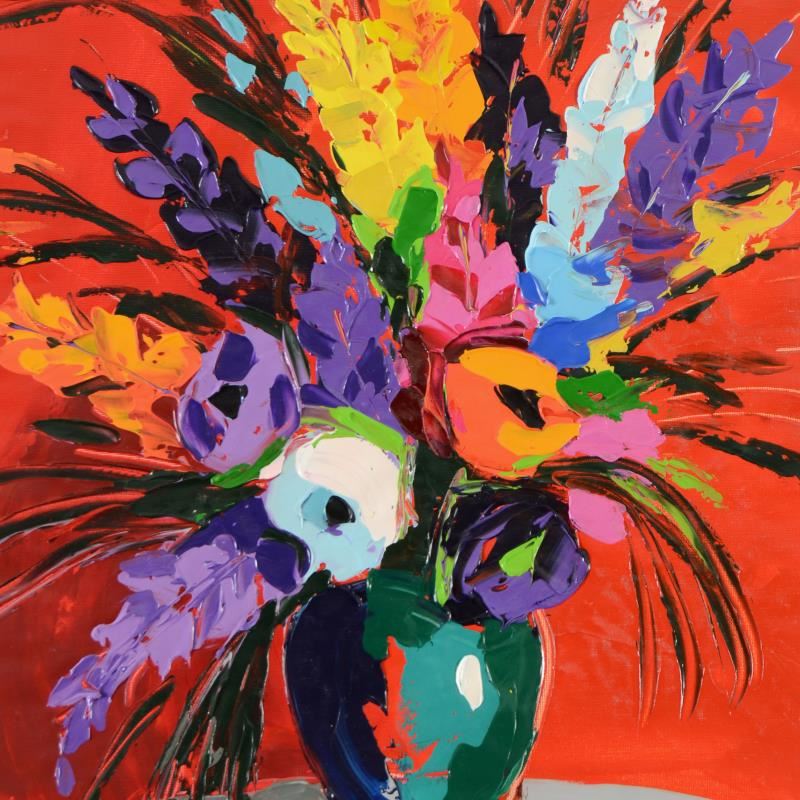 This is an original acrylic painting on canvas by Lena Tants, hand signed by the artist. Includes Letter of Authenticity. Measures approx. 20" x 23" (image).