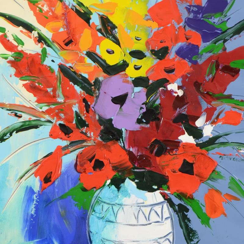 This is an original acrylic painting on canvas by Lena Tants, hand signed by the artist. Includes Letter of Authenticity. Measures approx. 16" x 30" (image).