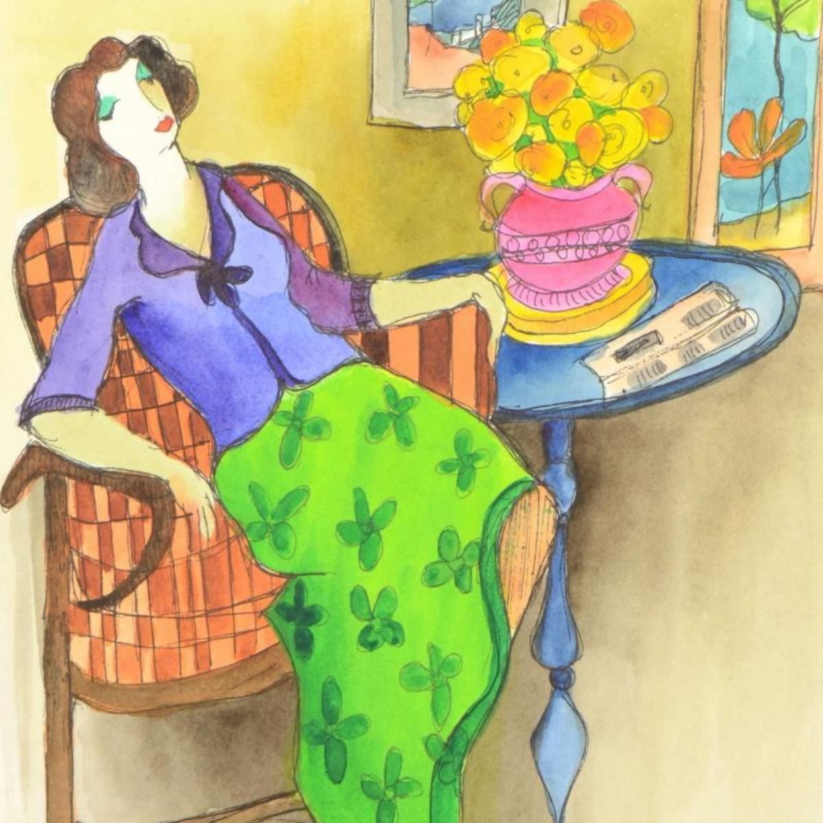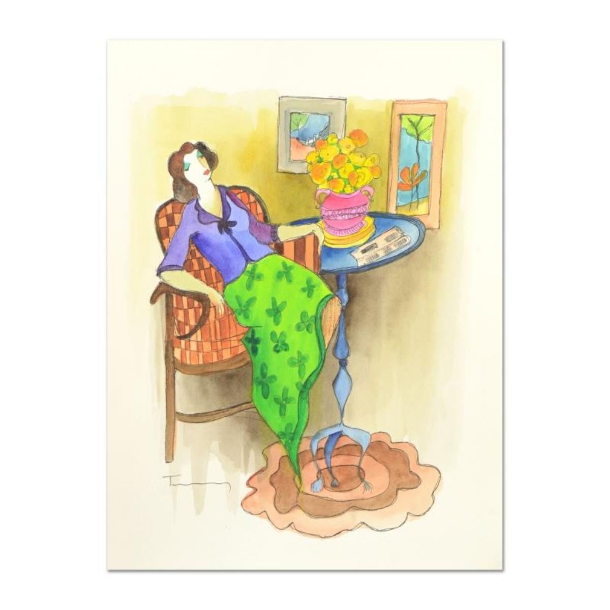 Untitled by Tarkay (1935-2012). This is an original mixed media watercolor on paper by Itzchak Tarkay (1935-2012), hand signed by the artist. Includes Letter of Authenticity. Measures approx. 12" x 16" (image).