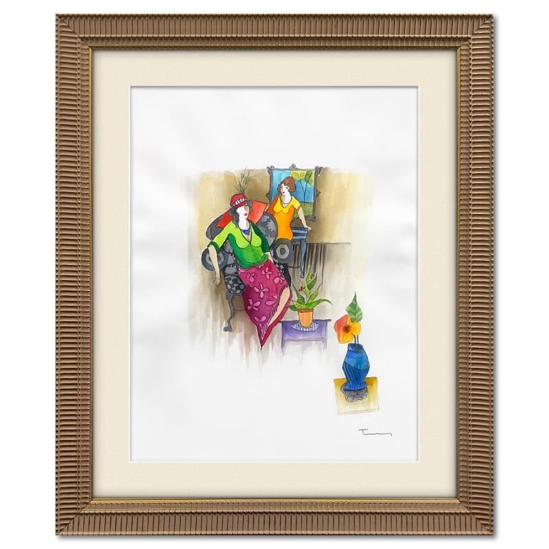 This is an original mixed media watercolor on paper by Itzchak Tarkay (1935-2012), hand signed by the artist. This piece comes custom framed. Includes Letter of Authenticity. Measures approx. 39" x 34" (frame), 30" x 22" (image). The paper is slightly wav
