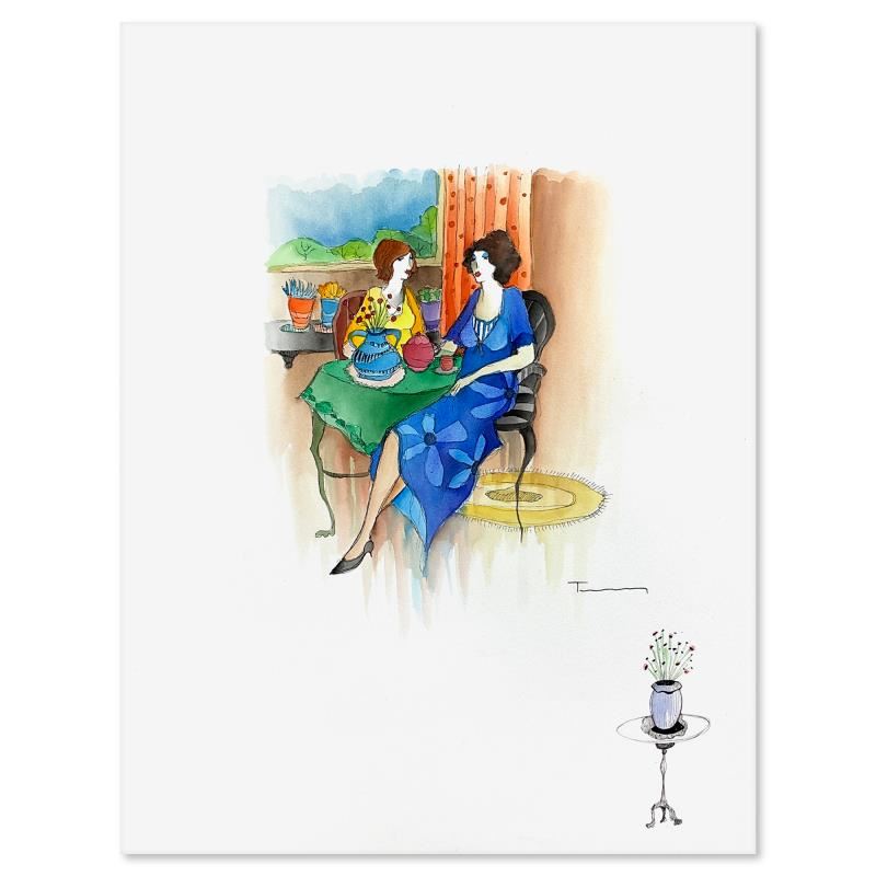 This is an original watercolor painting on paper by Itzchak Tarkay (1935-2012), hand signed by the artist. Includes Letter of Authenticity. Measures approx. 22" x 30" (image).