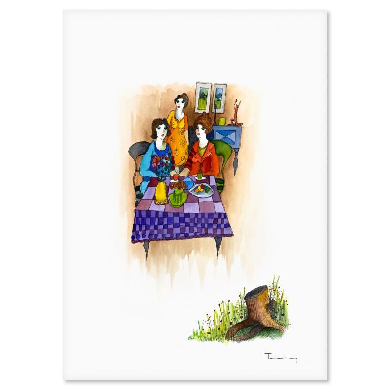 This is an original mixed media watercolor on paper by Itzchak Tarkay (1935-2012), hand signed by the artist. Includes Letter of Authenticity. Measures approx. 30" x 22" (image).