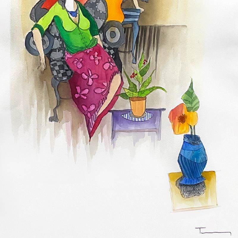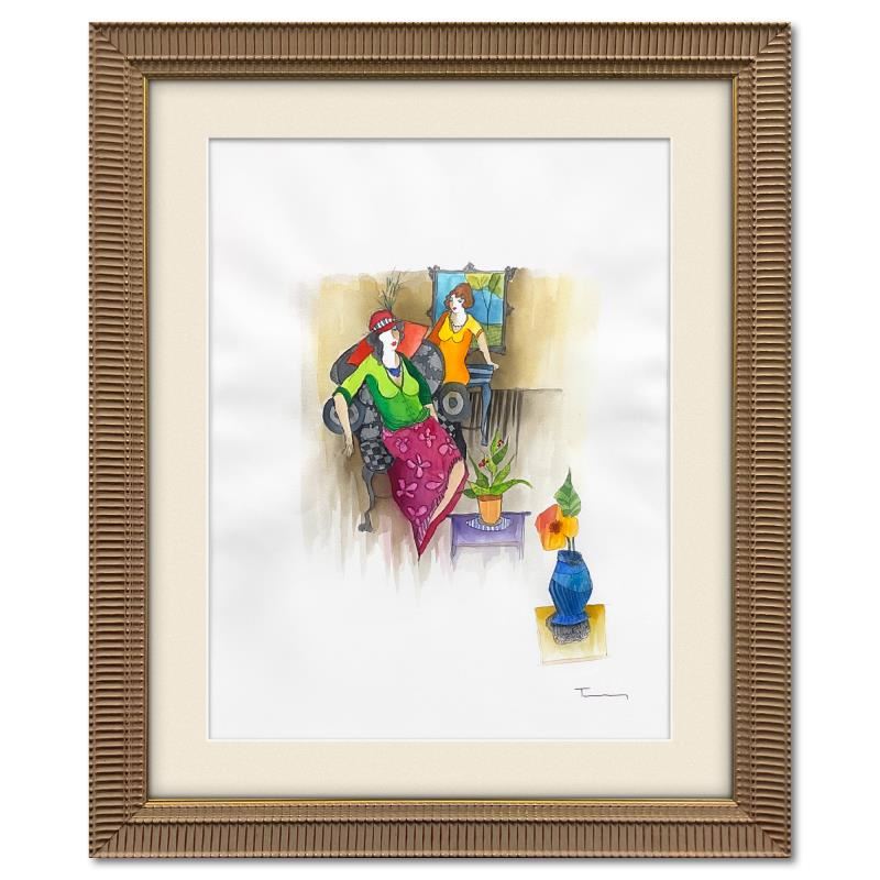 This is an original mixed media watercolor on paper by Itzchak Tarkay (1935-2012), hand signed by the artist. This piece comes custom framed. Includes Letter of Authenticity. Measures approx. 39" x 34" (frame), 30" x 22" (image). The paper is slightly wavy due to the nature of the watercolor medium.