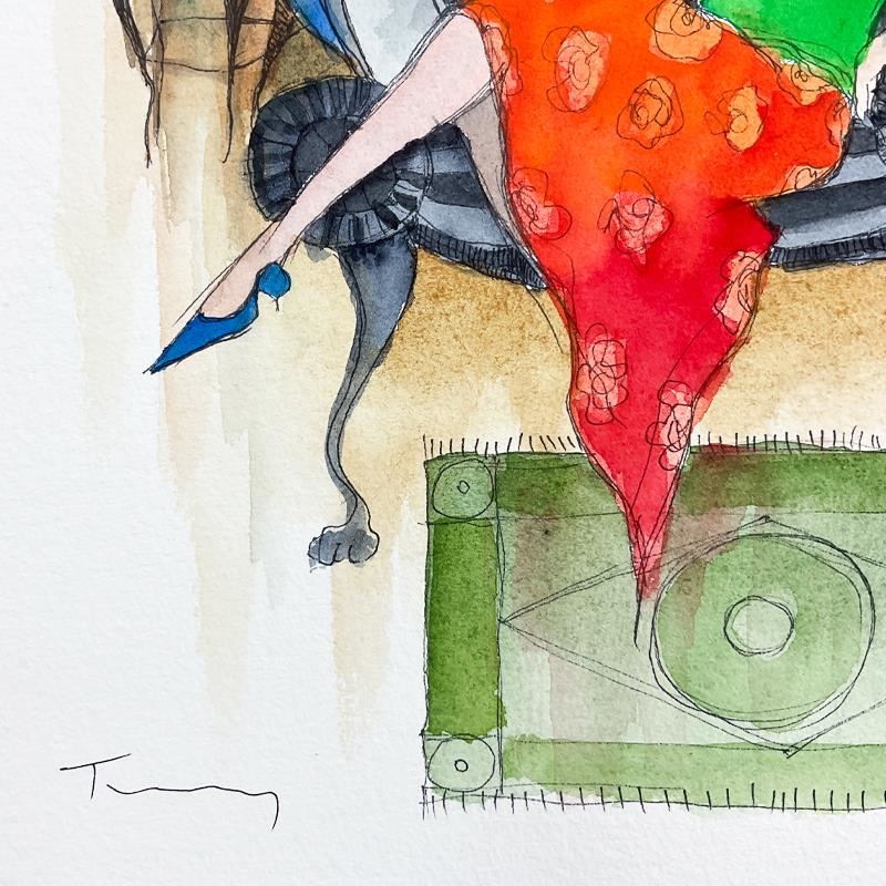 This is an original watercolor painting on paper by Itzchak Tarkay (1935-2012), hand signed by the artist. Includes Letter of Authenticity. Measures approx. 8 x 10 (image).