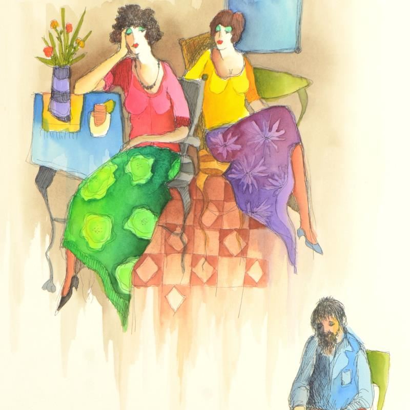 This is an original mixed media watercolor on paper by Itzchak Tarkay (1935-2012), hand signed by the artist. Includes Letter of Authenticity. Measures approx. 22" x 30" (image).