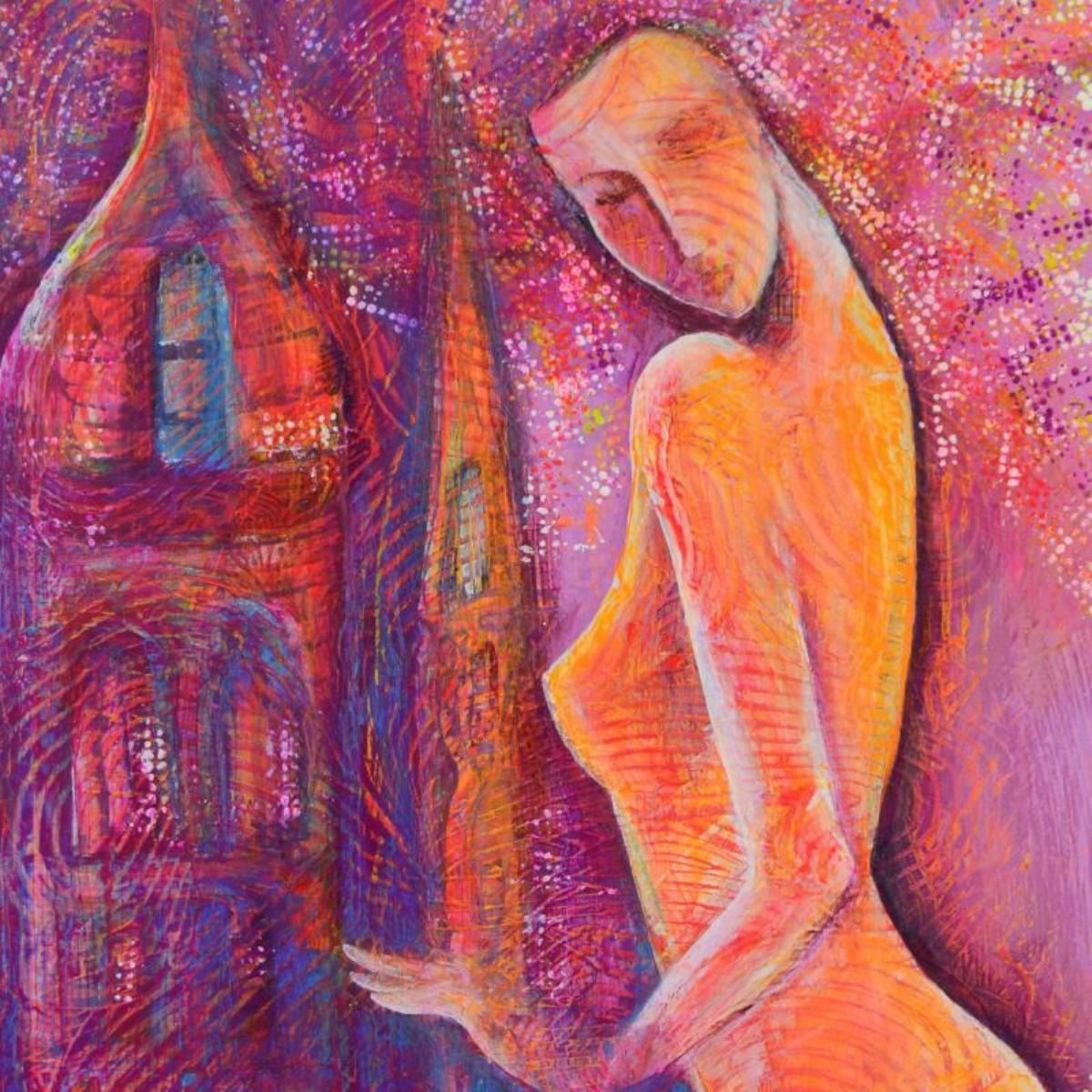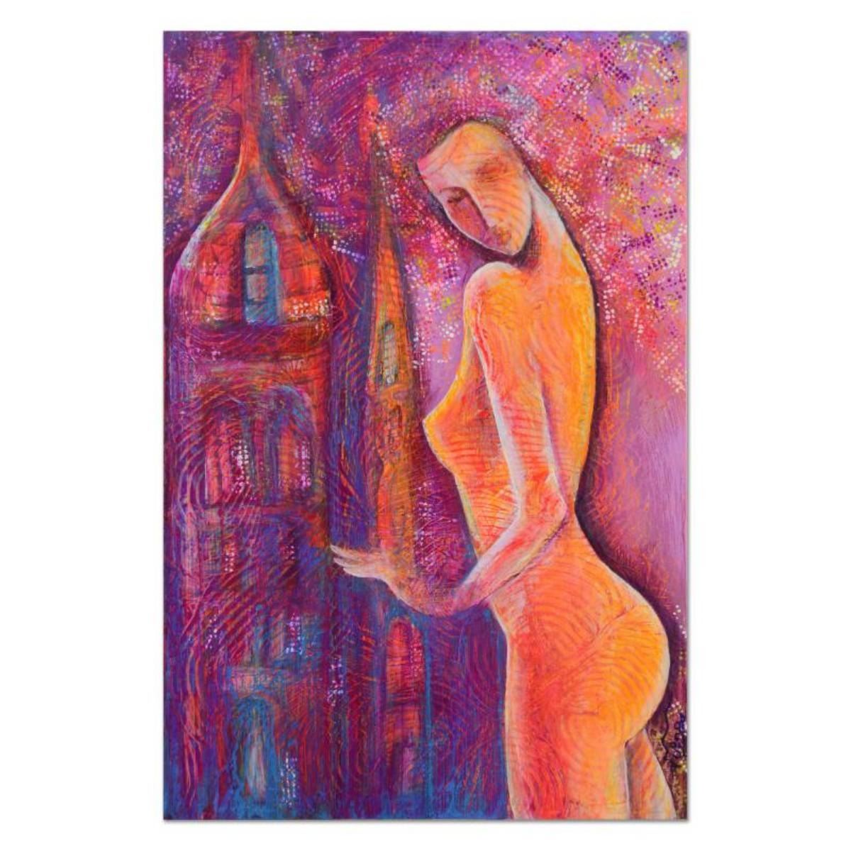 This is an original acrylic painting on canvas by Nadia Volna, hand signed by the artist. This piece comes gallery wrapped. Includes Certificate of Authenticity. Measures approx. 24" x 36" (image).