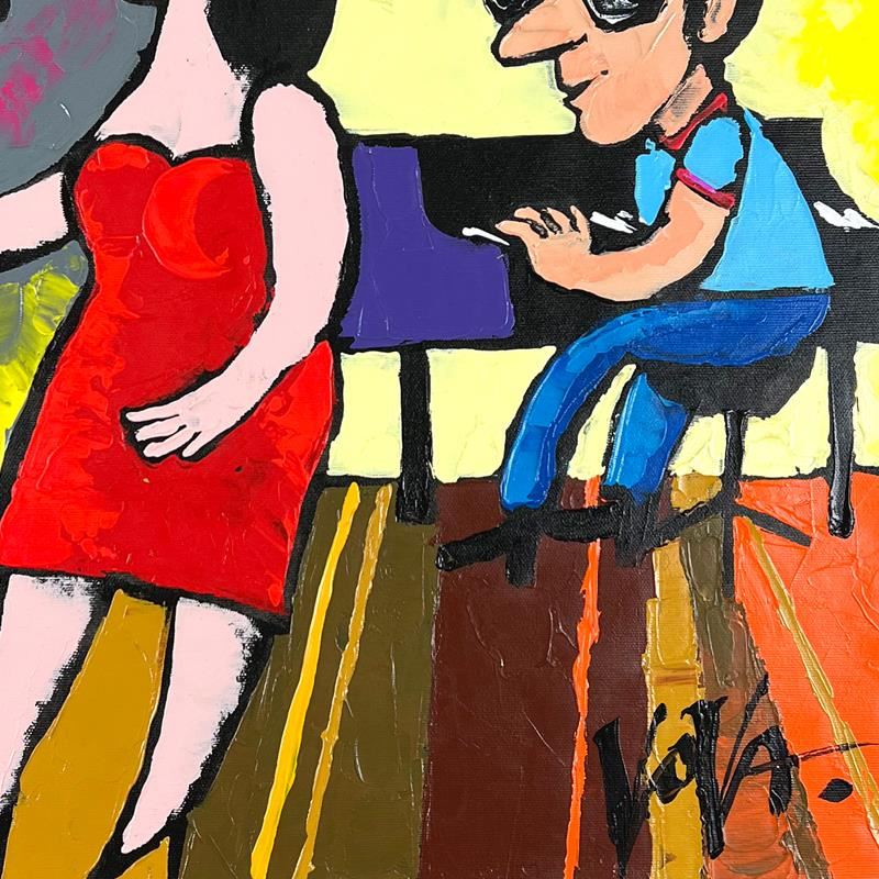 This is an untitled original painting, acrylic on canvas, by Vova. Hand Signed by the artist, the piece comes with a letter of authenticity. Measures approximately 23.5" x 24".
