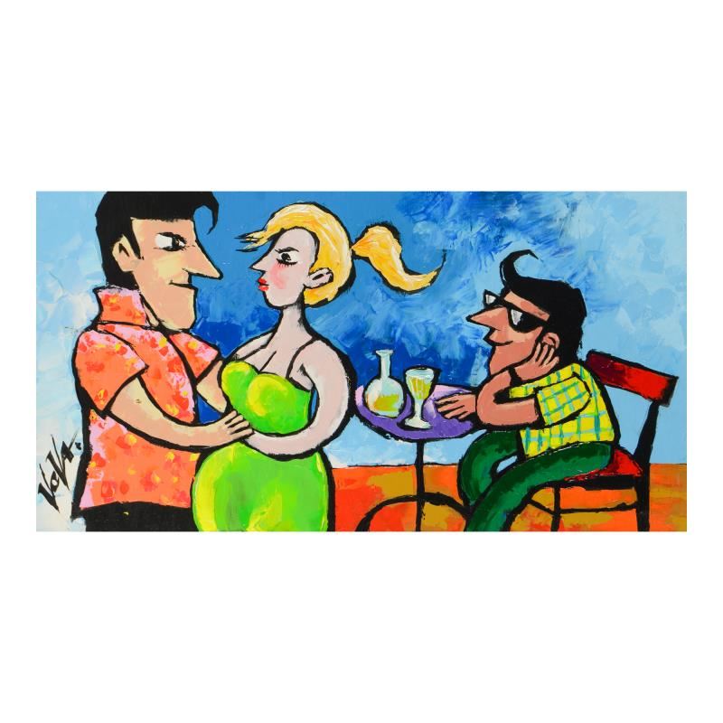 This is an original acrylic painting on canvas by Vova, hand signed by the artist. Includes Letter of Authenticity. Measures approx. 32" x 16" (image).