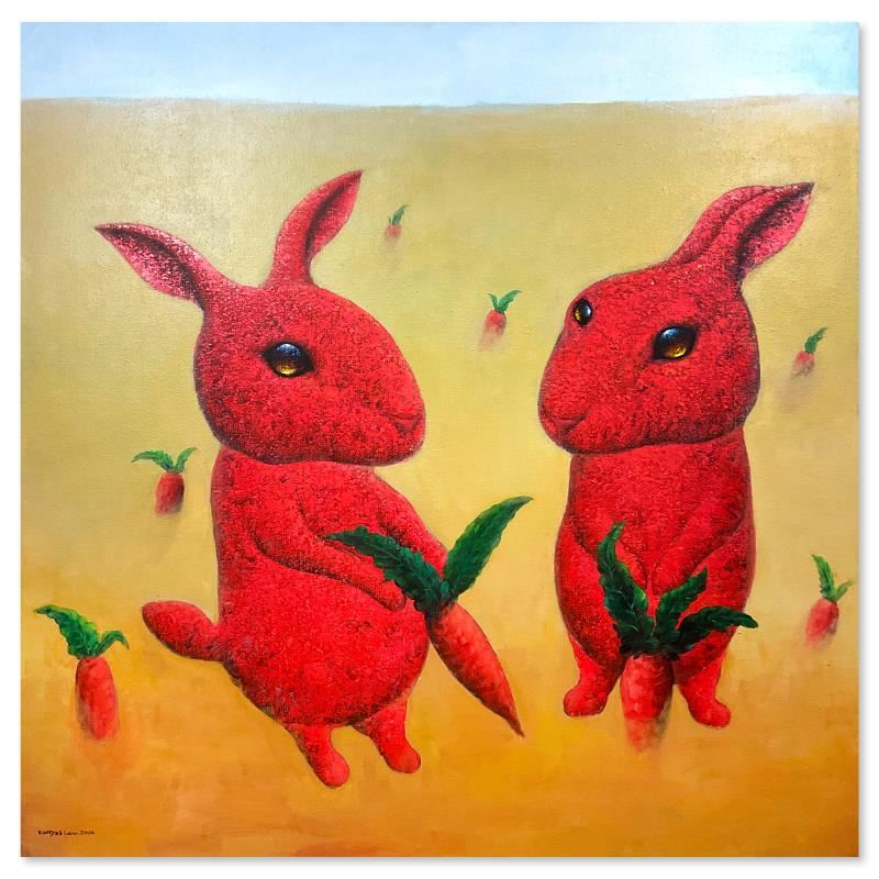 This is an original mixed media painting on canvas by Wang, hand signed by the artist. This piece comes gallery wrapped. Includes Letter of Authenticity. Measures approx. 55" x 55" (image). There are minor scuffs on the canvas that are only noticeable upon close inspection.
