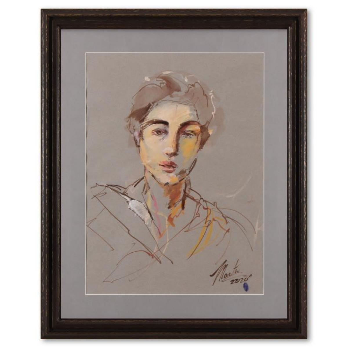 Untitled by Wiley Original. This is an original mixed media painting on paper, hand signed and thumb printed by Marta Wiley. This piece comes custom framed. Includes Letter of Authenticity. Measures approx. 25.5" x 31.5" (frame); 17" x 23" (image). Due to the medium, the paper may be slightly wavy, particularly around the edges.