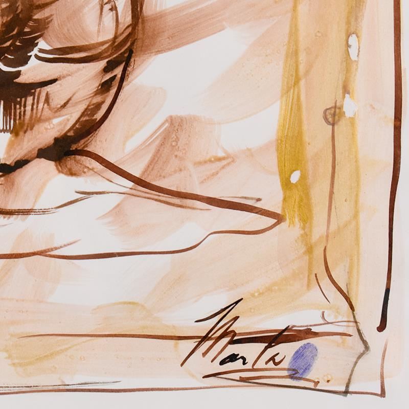 This is an original mixed media painting on paper, hand signed and thumb printed by Marta Wiley. This piece comes custom framed. Includes Letter of Authenticity. Measures approx. 30.5" x 24.5" (frame); 23" x 17" (image). Due to the medium, the paper may be slightly wavy, particularly around the edges.