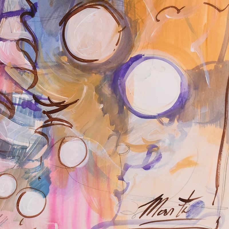 This is an original mixed media painting on paper, hand signed and thumb printed by Marta Wiley. This piece comes custom framed. Includes Letter of Authenticity. Measures approx. 31" x 25" (frame); 23" x 17" (image). Due to the medium, the paper may be slightly wavy, particularly around the edges.