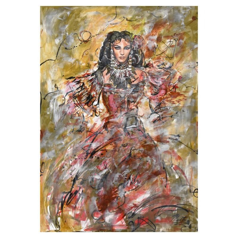 This is an original mixed media painting on canvas by Marta Wiley, hand signed and thumbprinted by the artist. Includes Letter of Authenticity. Measures approx. 32" x 46" (image).