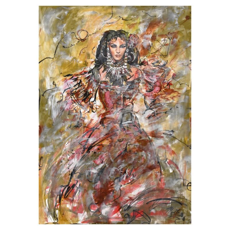 This is an original mixed media painting on canvas by Marta Wiley, hand signed and thumbprinted by the artist. Includes Letter of Authenticity. Measures approx. 32" x 46" (image).