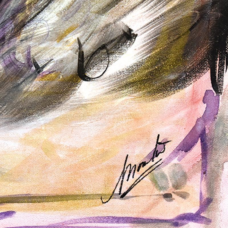 Untitled by Wiley Original. All available information is listed in the description and shown in the photo. This is an original mixed media painting on canvas by Marta Wiley, hand signed and thumbprinted by the artist. Includes Letter of Authenticity. Measures approx. 32" x 32" (image).