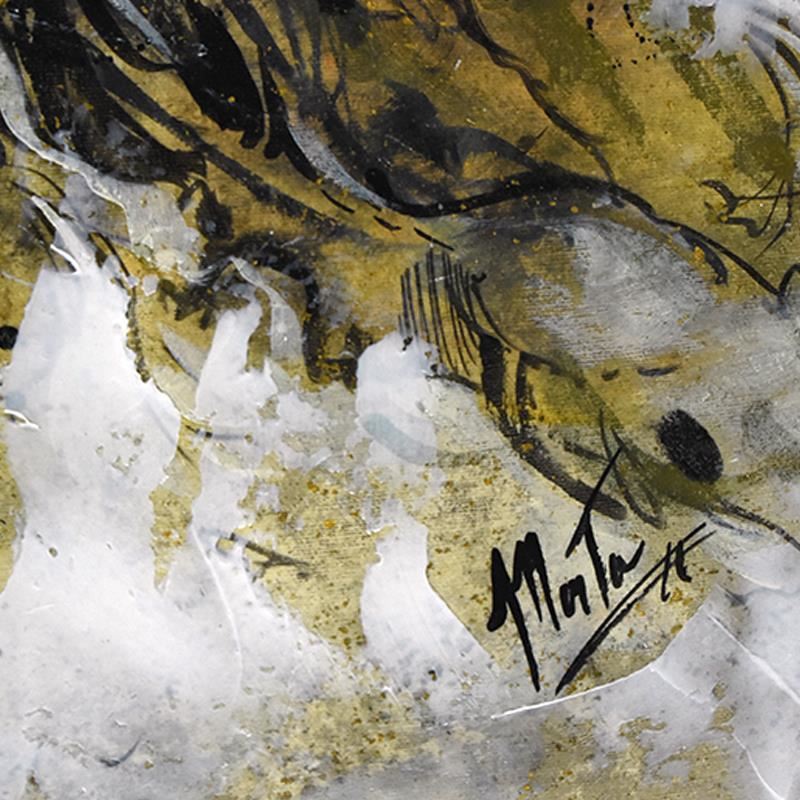 This is an original mixed media painting on canvas by Marta Wiley, hand signed and thumbprinted by the artist. Includes Letter of Authenticity. Measures approx. 40" x 36" (image).
