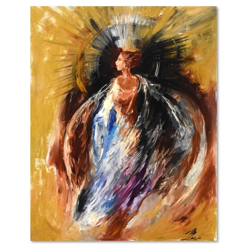 This is an original mixed media painting on stretched canvas by Marta Wiley, hand signed and thumbprinted by the artist. Includes Letter of Authenticity. Measures approx. 16" x 20" (image).