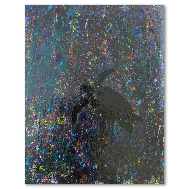 This is an original painting on board by Wyland. Hand signed by the artist, this piece includes a letter of authenticity. Measures approximately 20" x 16".