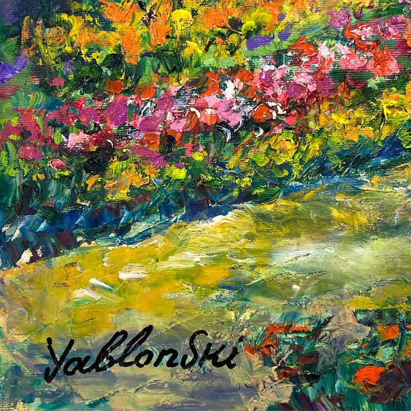 This is an original oil painting on canvas by Shafira Yablonski, hand signed by the artist. Includes Letter of Authenticity. Measures approx. 16" x 30" (image).
