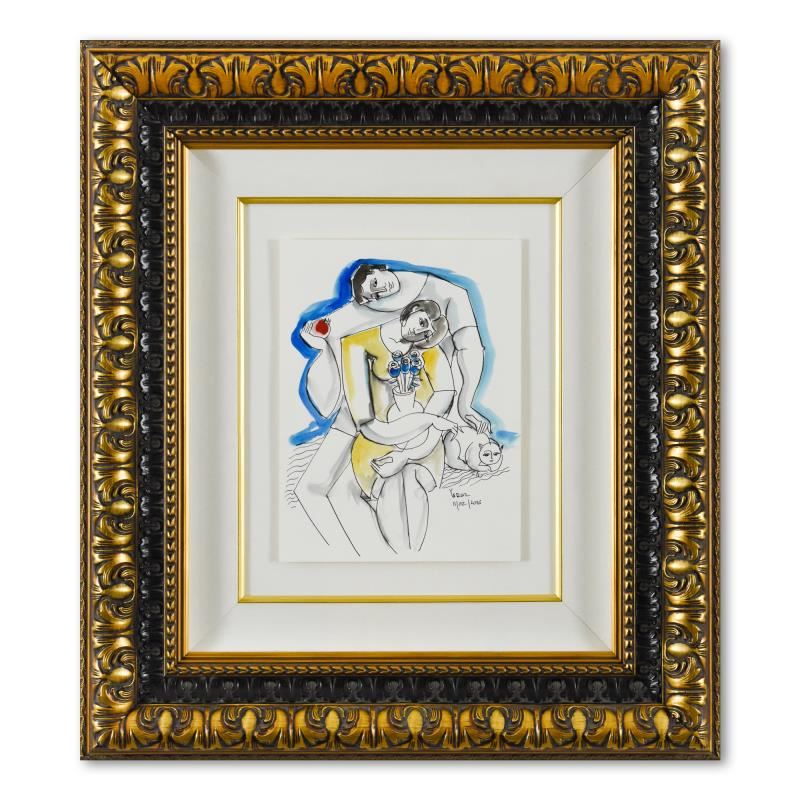 This is an original mixed media watercolor painting on paper by Yuroz, hand signed by the artist. This piece comes custom framed. Includes Letter of Authenticity. Measures approx. 24" x 27" (frame), 9" x 12" (image).